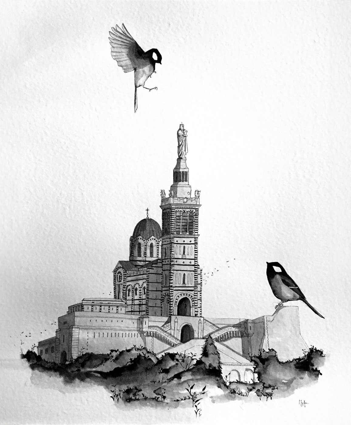 Mes petits formats sont peints à l’aquarelle et à l’encre.