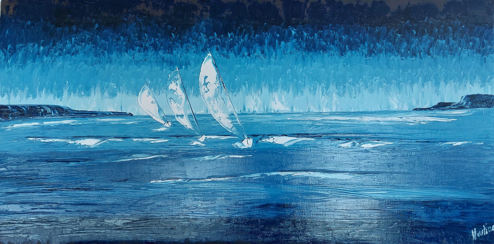 Mes peintures sortent des profondeurs de ma sensibilité, c’est la source de ma création : paysages imaginaires, des marines normandes, de l’Univers.
