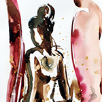 C’est au milieu d’une nature florale, nourrie par ses parents fleuristes, que grandit Stéphane Hauton. Dès son plus jeune âge, le crayon et d’autres instruments artistiques deviennent le prolongement de ses émotions, de sa personnalité en devenir. Après une formation d’orfèvre, Stéphane évolue dans le graphisme, la peinture et le dessine. Il affine son trait tout en se laissant la liberté d’expérimenter. Ses techniques de prédilections ? L’aquarelle, le lavis… « L’odeur, l’eau substance invisible. Sur nos cinq sens lequel est le plus endormi chez vous ? Quelle est votre madeleine de Proust ? Ce sens olfactif insuffisant, je compense et peins l’invisible des arômes avec de l’eau de façon obsessionnelle. Comme un chercheur j’essaye d’attraper le sens fugace des odeurs pour l’encapsuler sur mes supports, métal, papier, toile ».