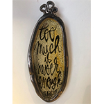 « J’écris. Ma calligraphie danse sur un support céramique ou sur un support papier. Le tout choisi en conscience et en cohérence avec l’objectif final. Les sens des mots et des messages sont minutieusement élaborés et écrits devenant ainsi des canaux d’émotions et d’idées. Je cherche à susciter une réflexion, à provoquer une réaction, à donner à chacune et à chacun une occasion de s’arrêter et de contempler l’objet …. »